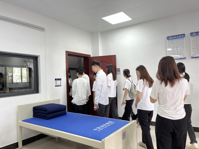紧接着,在消防宣讲员引导下先后参观消防安全知识展示区、消防车辆、灭火救援装备、指战员宿舍,并现场演示了消防水带、切割机、液压扩张器破拆和原地佩戴空气呼吸器等。之后,消防宣讲员带领大家参观宿舍并给他们演示“豆腐块”叠法。最后,“零距离”体验了消防水带、空气呼吸器佩戴以及灭火防护服等各类消防技能的实战运用。全体师生通过“看、听、做、思”的形式接触消防,感知消防,了解消防,加强了对消防工作的感性认识,进一步提升了消防安全意识。