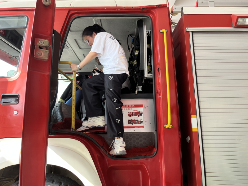 学生体验入座消防车