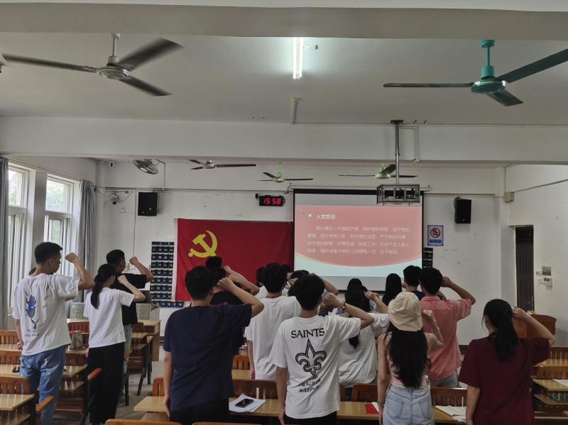 大会最后,转正党员在党旗下宣读入党誓词。支部书记孔雅慧同志祝贺岳爱雨等12名同志正式加入中国共产党的队伍,希望他们树立坚定的理想信念,严格遵守党的纪律,严格要求自己,并祝毕业党员同志们工作顺利,前程似锦。