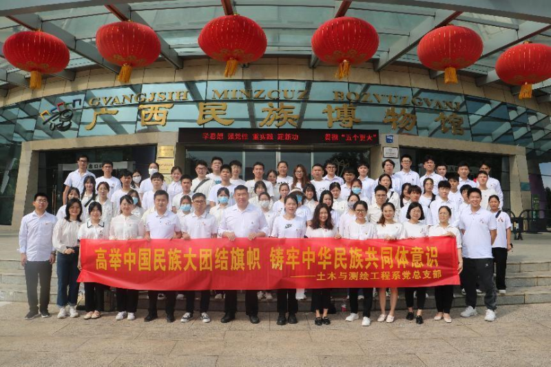 2023年5月5日上午,土木与测绘工程系全体师生党员前往广西民族博物馆开展“高举民族大团结旗帜,铸牢中华民族共同体意识”主题教育活动。