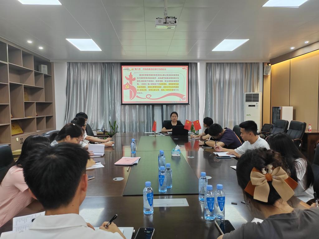 7月4日下午,我院学生第六党支部于物华楼6406室集体学习《中国共产党纪律处分条例》,本次学习由支部书记孔雅慧同志主持,支部全体党员参加。
