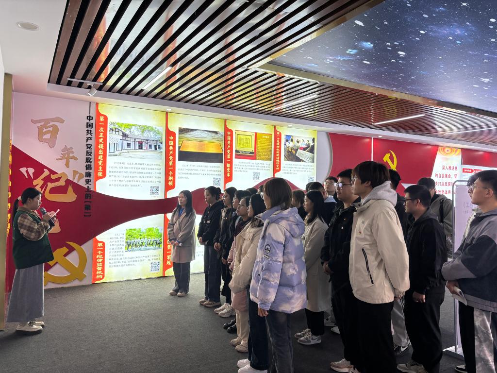 为加强党纪学习教育,发挥党员学纪、知纪、明纪、守纪的先锋模范作用,我院学生第五党支部于2024年12月13日开展“参观廉政教育馆和廉政文化长廊”主题党日活动。本次活动由支部书记石慧梅同志主持,支部全体党员同志参加。