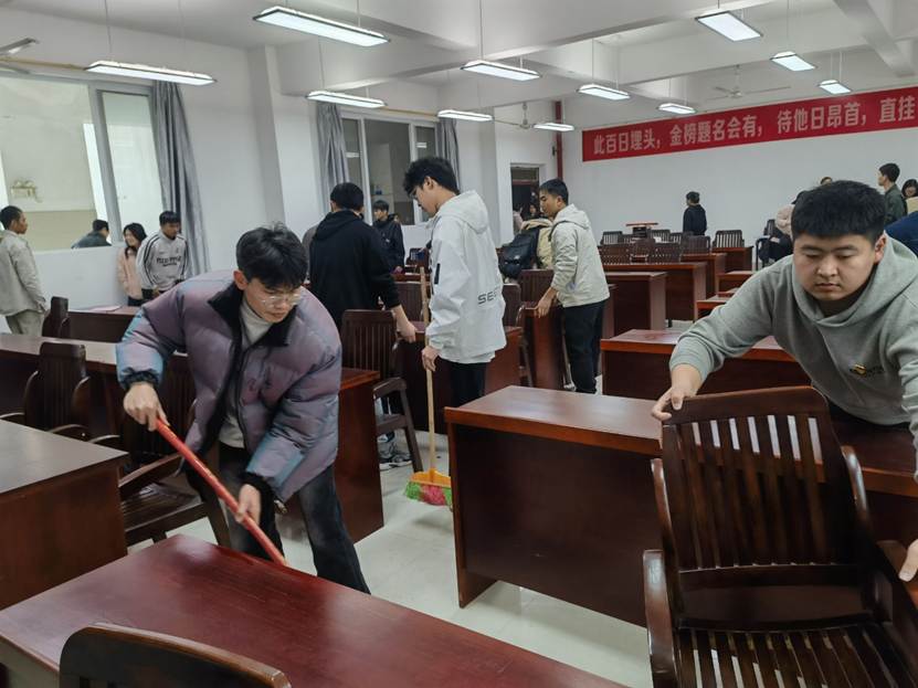 为积极弘扬雷锋精神,提升党员服务意识。3月7日下午,我院学生第五、六党支部组织开展“传承雷锋精神,党员护航研途”主题党日活动,在支部书记石慧梅、孔雅慧的带领下,30余名师生党员齐聚实训楼C211教室,对考研自习室进行全面清洁整理。