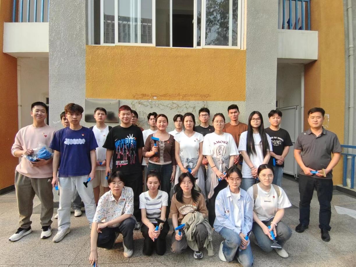 活动开始时,支部副书记占宇,将铲子、扫把等清洁工具整齐摆放在集合地点,大家自觉排起队伍,依次领取。活动中,同志们分工协作,配合默契,认真清理教学楼墙面、地面上残留的疫情管控张贴品、考试安排纸等,不放过任何一个角落。经过同志们的努力,教学楼墙面焕然一新,恢复了整洁干净的面貌。活动最后,支部书记朱志衡组织大家合影留念。