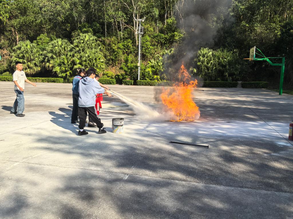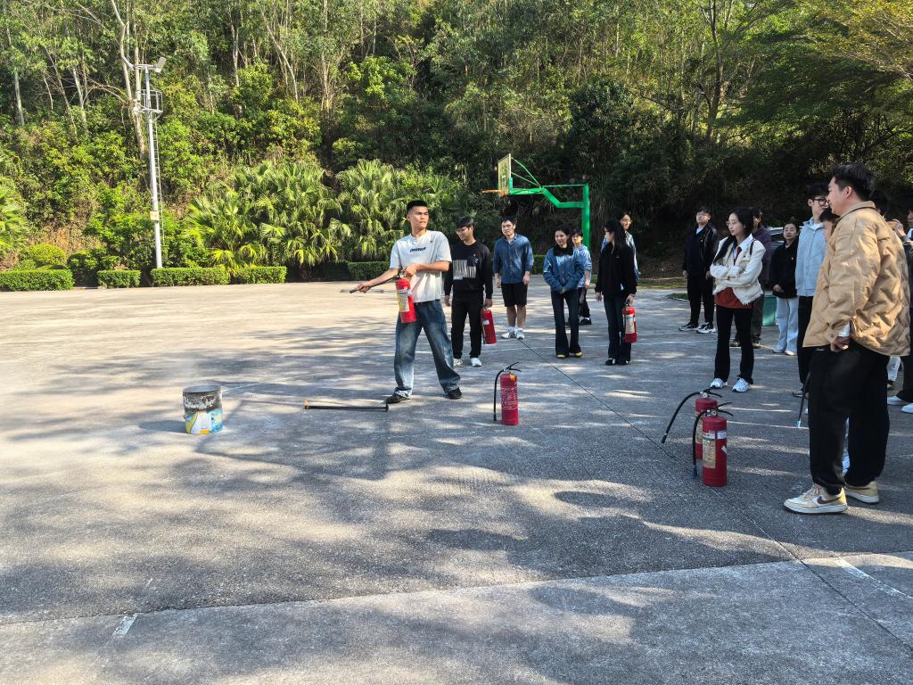 活动中,陈绪宽同志结合校园消防安全实际,详细讲解了灭火器的类型、适用火灾类型(A、B、C、D类火灾)及使用年限、压力标识等知识,重点强调了“提、拔、握、压”的灭火器操作要领,详细说明火灾发生时的人员分工、灭火策略及逃生注意事项。理论讲解后,党员们在陈绪宽的指导下,进行灭火器灭火实操,规范完成灭火器操作每一个环节,切实将理论知识转化为实践能力。