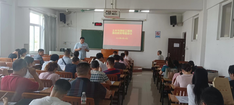 6月10日下午,土木与测绘工程系于物华楼405教室召开教职工廉政教育专题会议,土木与测绘工程系领导班子、全体教职工参加会议,会议由系党总支书记黄文学主持。
