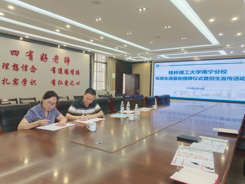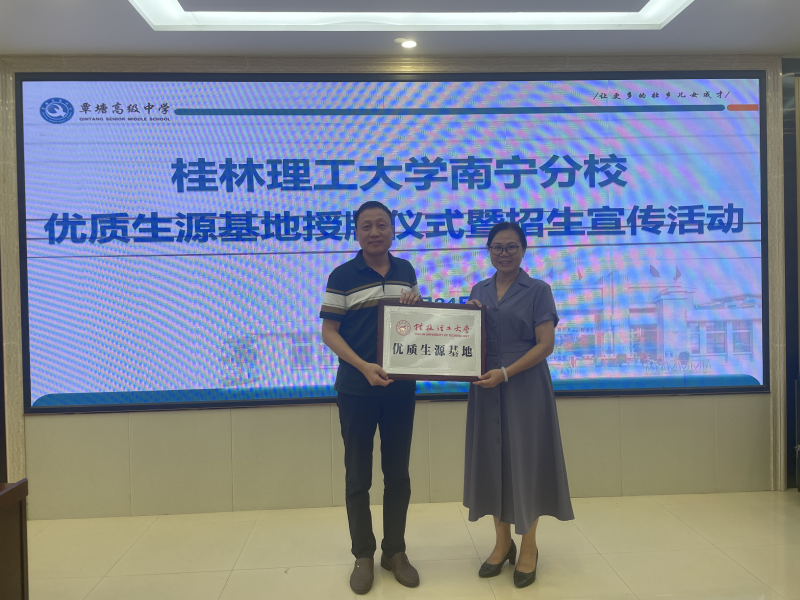 最后,双方就中学教师学历提升、高中生研学、教授专题讲座等校际合作活动达成初步共识,签订共建桂林理工大学“优质生源基地”协议,并授予覃塘高级中学“桂林理工大学优质生源基地”牌匾。