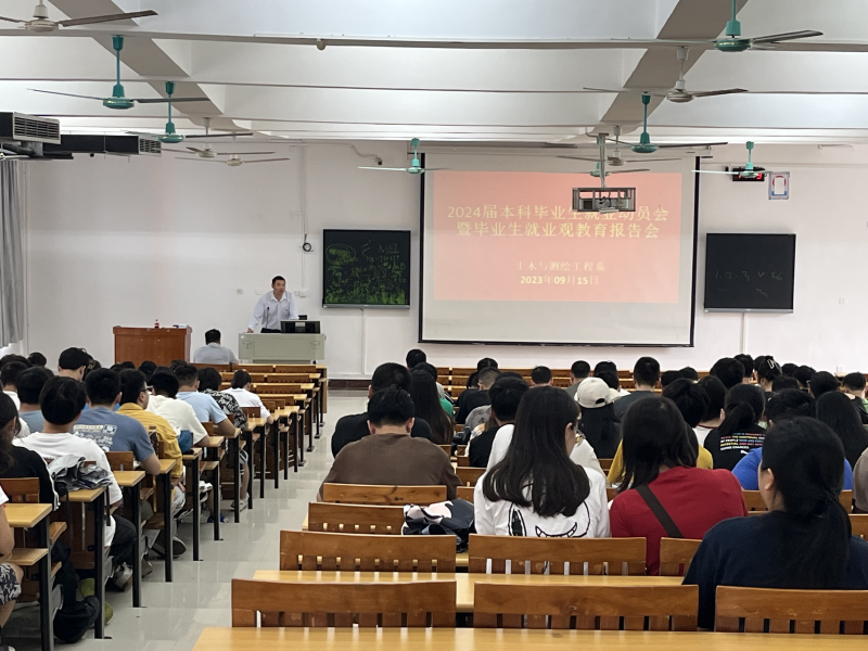 为深入贯彻落实党中央“稳就业”“保就业”的决策部署,引导毕业生树立正确的就业观,2023年9月15日下午,我系于8208教室召开了2024届本科毕业班学生就业动员大会暨毕业生就业观教育报告会。我系党总支书记黄文学、党总支副书记兼学工组长何建金出席大会,我系全体2024届本科毕业班学生到场参会。