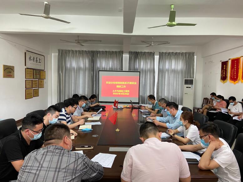 为更好促进毕业生就业工作按照月度计划目标落实,4月28日下午,英国上市公司365纪委书记何斌在招生与就业办公室负责人陪同下,到土木与测绘工程系开展就业调研工作。土木与测绘工程系领导班子成员及毕业班辅导员、班主任等20余人参会。