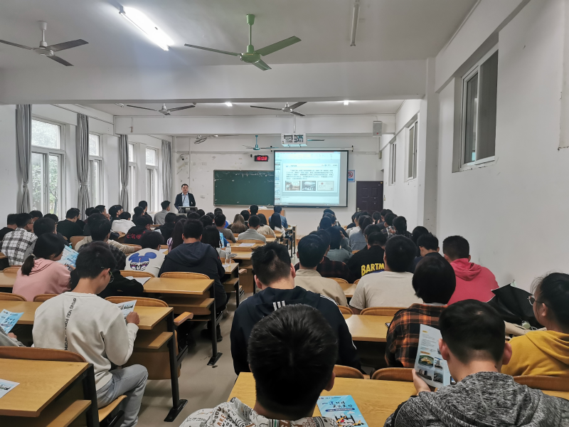 2022年10月14日下午,佛山市天健工程勘察院有限公司蔡总经理一行到我系物华楼204教室举办2023届毕业生专场招聘会。