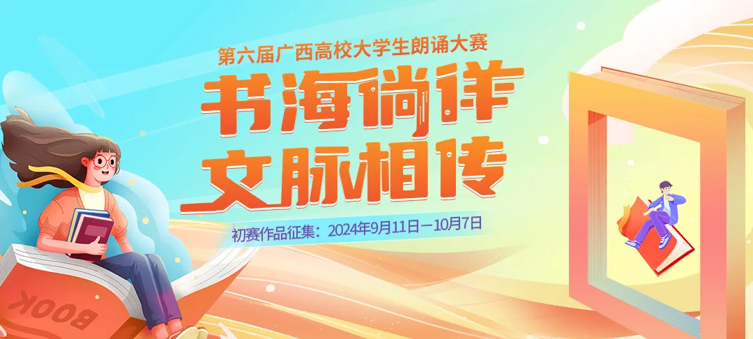 第六届广西高校大学生“书海徜徉 文脉相传”朗诵大赛即将开始,欢迎大家积极报名,踊跃报名!