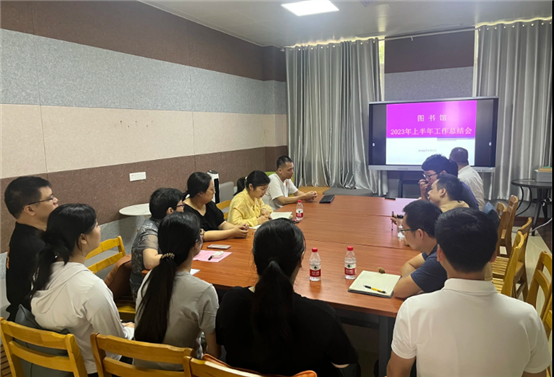 7月7日上午,图书馆在三楼研讨室召开2023年上半年工作总结会议,会议由副馆长唐小芳主持,图书馆全体馆员参加会议。
