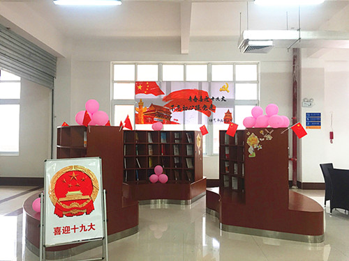 为迎接和庆祝党的十九大隆重召开,图书馆开展“喜迎十九大· 不忘初心跟党走”主题书展,地点位于图书馆三楼大厅。此次书展精选100多种图书,题材覆盖中国道路、中国梦、治国理政、新发展理念、中华优秀传统文化、社会主义核心价值观等。