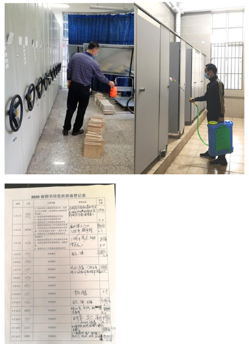 根据疫情防控工作要求,制定了《图书馆防疫清洁消毒工作实施细则》,定期对馆舍内外环境和设备进行清洁消毒,保持馆内空气流通,环境卫生,并建立清洁消杀工作台帐。