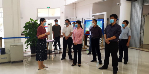 视察领导小组一行配合工作人员进行入馆口罩佩戴、扫码、消毒和体温测量等入馆查验措施,体验了人流控制线上“入馆预约”平台,仔细听取图书馆负责人对图书馆开馆准备方案,包括应急预案、防疫宣传、场馆消杀、图书消毒、人员管理、读者服务等内容的汇报,实地检查了图书馆读者服务区、消毒区、观察区的疫情防控部署情况。