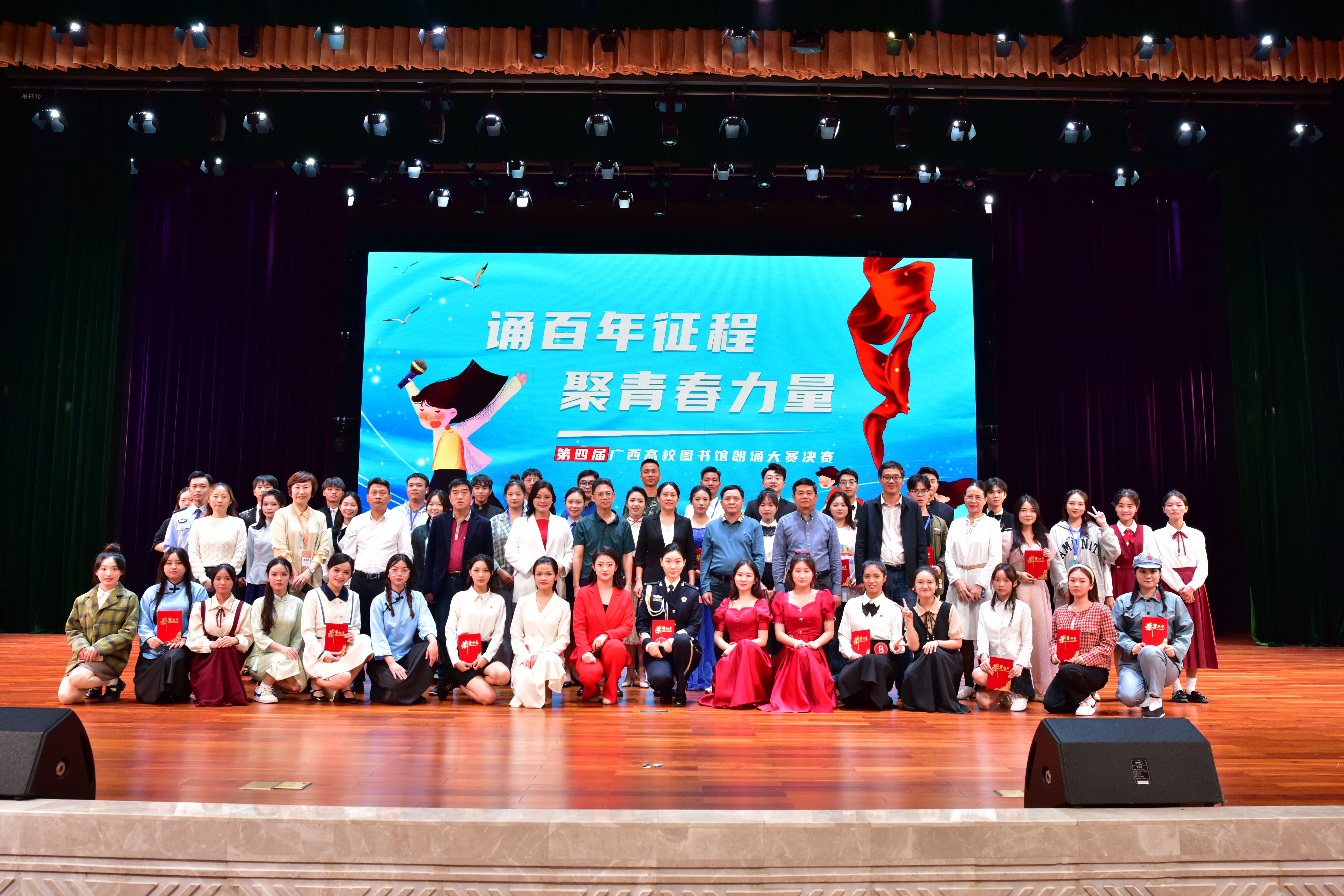 11月19日,由广西高教学会图书馆专业委员会与广西高校图书情报工作指导委员会主办、广西建设职业技术学院图书馆承办、全区各高校图书馆联合组织、武汉鼎森电子科技有限公司(博看网)协办的第四届广西高校图书馆“诵百年征程 聚青春力量”朗诵决赛在广西建设职业技术学院礼堂举行。