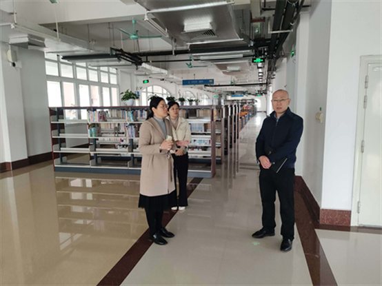 3月28日上午,分校党委书记李雨在分校党政办公室主任邹志友陪同下到图书馆调研指导工作。
