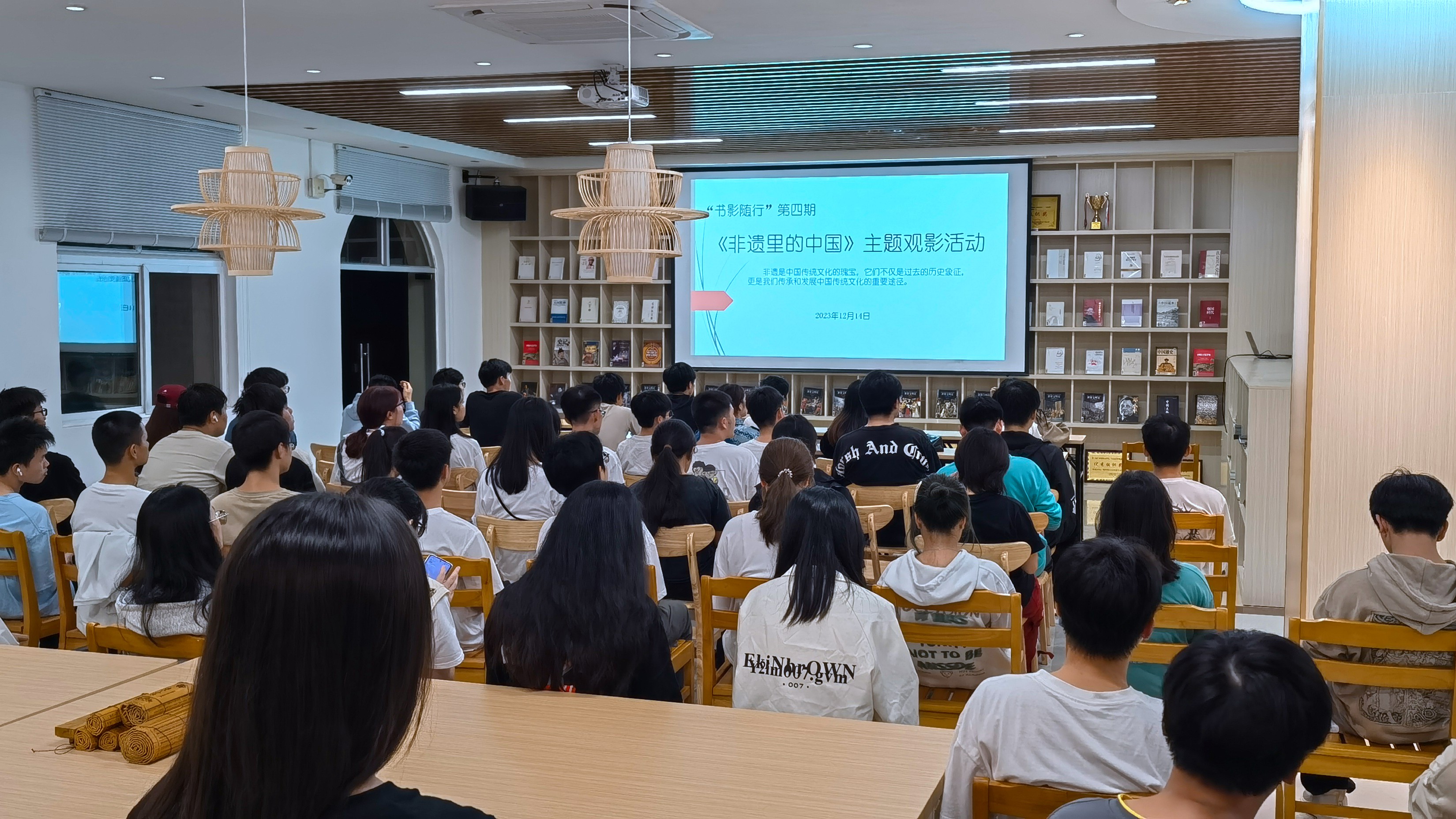12月14日晚,图书馆开展了第四期“书影随行”观影活动,组织学生观看了《非遗里的中国》节目选集并进行了观后感分享。
