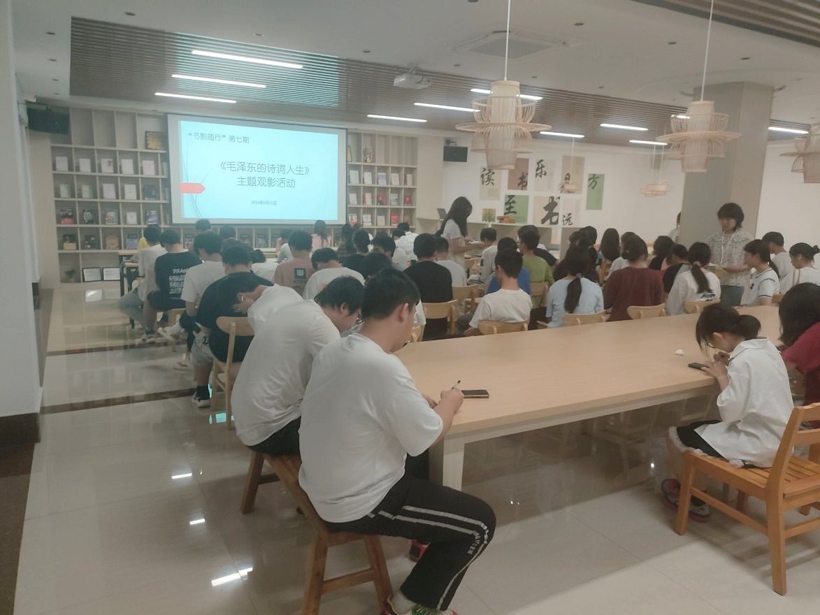 5月31日晚,图书馆开展了第七期“书影随行”活动,组织学生观看《毛泽东的诗词人生》选集并进行了观后感分享。