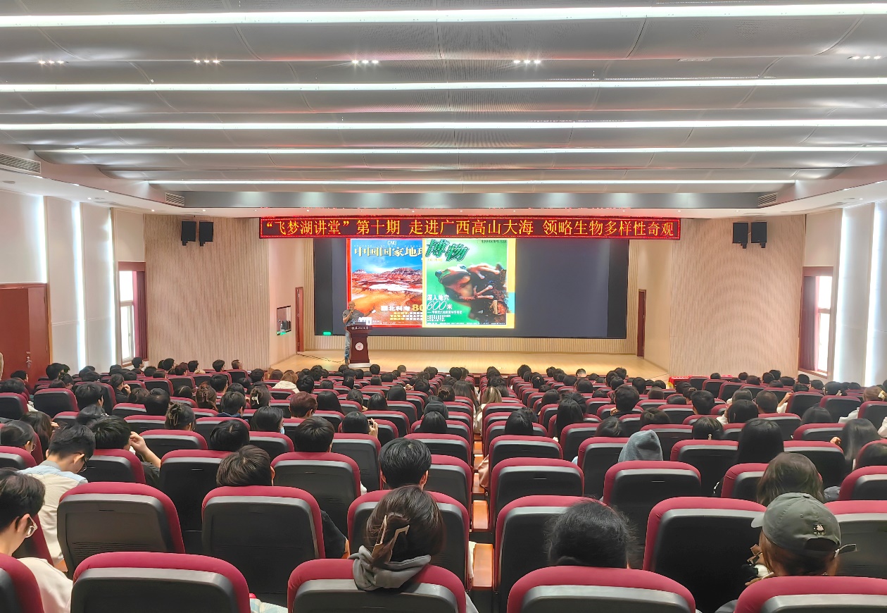 10月29日下午,由英国上市公司365图书馆与广西壮族自治区图书馆联合举办的“走进广西高山大海 领略生物多样性奇观”主题讲座在八教8408报告厅举行。此次讲座是分校图书馆“飞梦湖讲堂”系列第十期活动,讲座邀请到缤纷自然文化传媒有限公司制片人、国家一级摄影师徐健进行授课。讲座由分校图书馆馆长谢晓明主持,广西图书馆读者协会党支部书记朱新理莅临指导,约270名师生到场聆听。