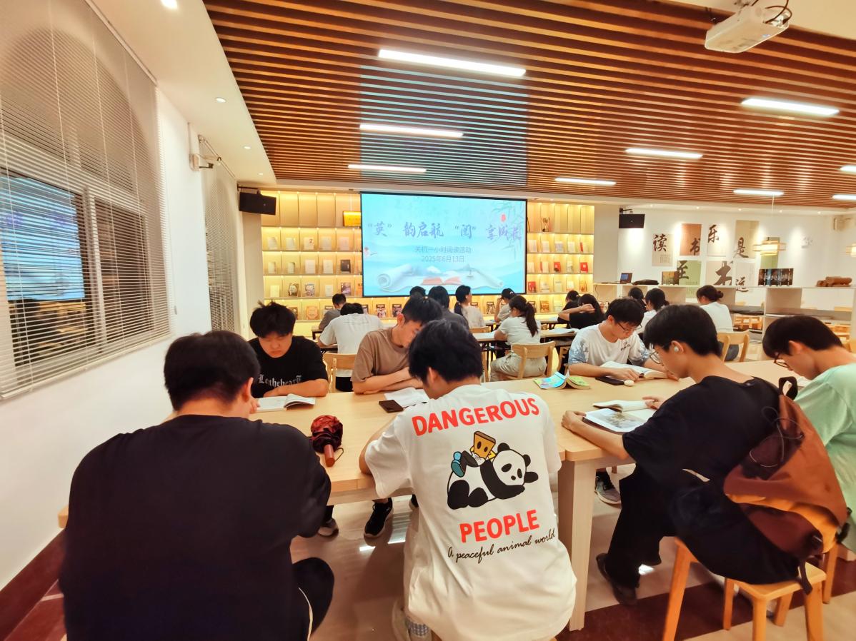 在全国英语等级考试临近之际,为打造沉浸式语言学习场景、提升读者英语阅读能力,6月13日晚,图书馆在七楼阅享空间开展了 “‘英’韵启航・‘阅’享成长” 关机一小时英语阅读主题活动。本次活动吸引了大批备考学子与英语爱好者踊跃参与,为静谧的图书馆注入了浓厚的学术氛围与学习活力。