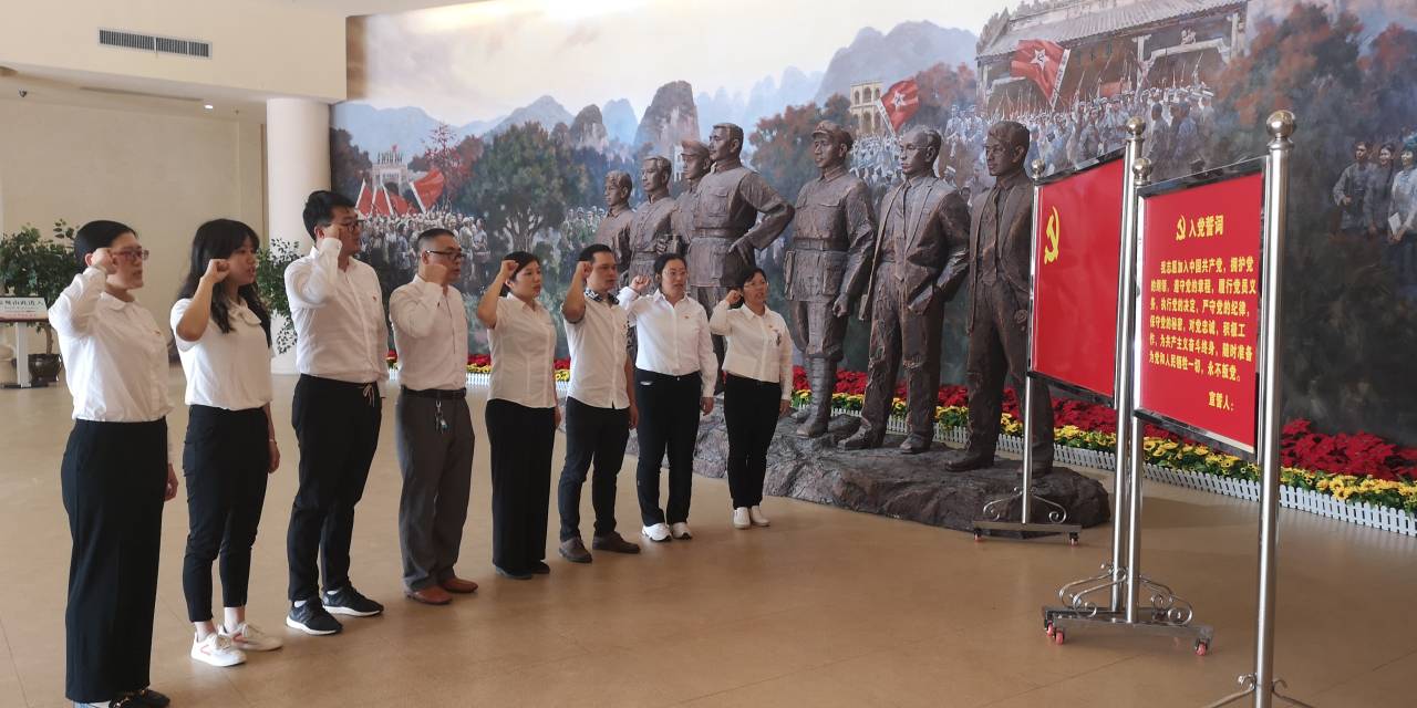 活动伊始,全体党员佩戴党员徽章,在展厅正门的党旗下庄严地举起右手,重温入党誓词,牢记自己作为党员的神圣使命和庄严承诺。随后,大家进入纪念馆参观学习。广西革命纪念馆是开展革命传统教育、爱国主义教育、廉政警示教育的中心场所,馆内陈列和收藏了广西自辛亥革命至中国共产党成立后各个历史时期的革命史料、文物及烈士事迹等资料。一张张图片,一幅幅震撼人心的画面通过运用声、光、电、多媒体、雕塑、油画、场景复原等方式全面展示了中国共产党在广西的革命斗争历程和广西著名英烈的历史史迹。