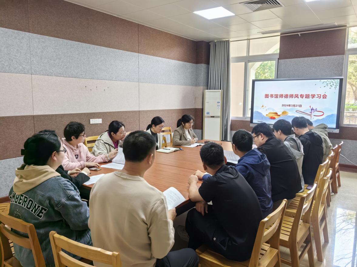 为认真落实学校关于开展师德师风专题教育学习工作的通知要求,进一步加强学校师德师风建设,提高广大教职工的师德素养。2024年3月21日下午,图书馆分工会召开师德师风专题教育学习会。会议由分工会主席蒙童慧主持,全体会员参加。
