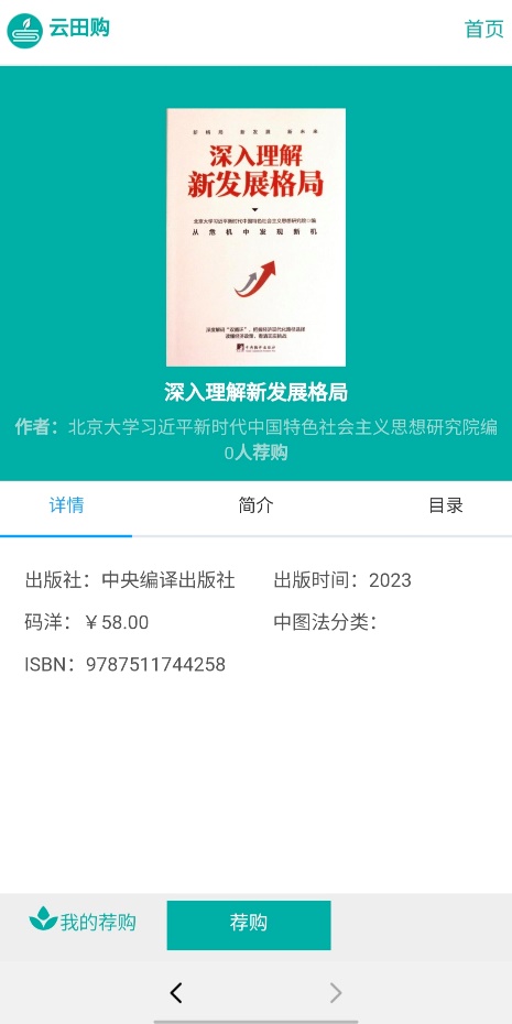 3.在荐购图书详情页面点击荐购,完成该本图书荐购。