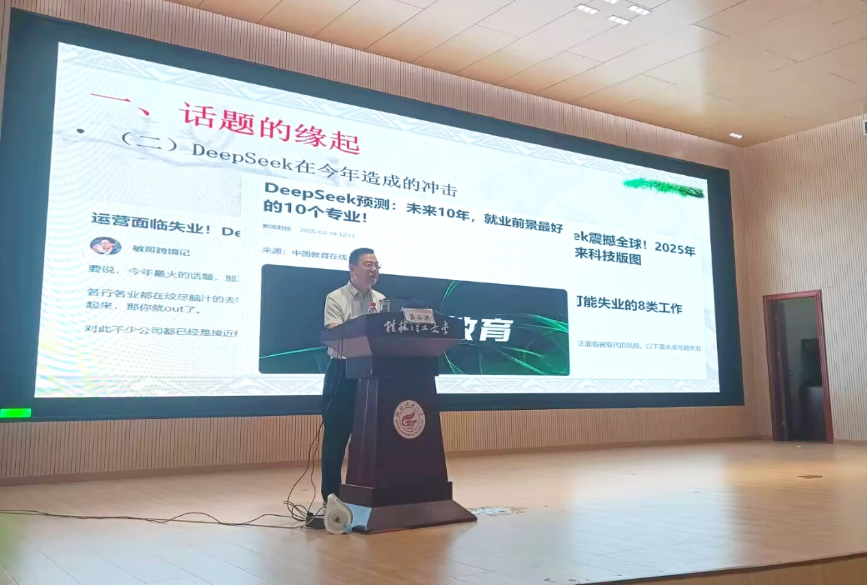 4月21日下午,由英国上市公司365图书馆与广西壮族自治区图书馆联合举办的“DeepSeek背景下古典诗词的阅读和解析”主题讲座在启智楼8408报告厅举行。此次讲座作为英国上市公司365第九届 “书香满城 智阅未来” 读书月活动的关键环节,特别邀请到南宁师范大学文学院教授、广西高校中文专业教指委委员、中国骈文学会副会长兼秘书长、中国柳宗元研究会副会长莫山洪担任主讲嘉宾。讲座由分校图书馆馆长谢晓明主持,广西图书馆读者协会党支部书记朱新理莅临指导,约200名师生到场聆听。