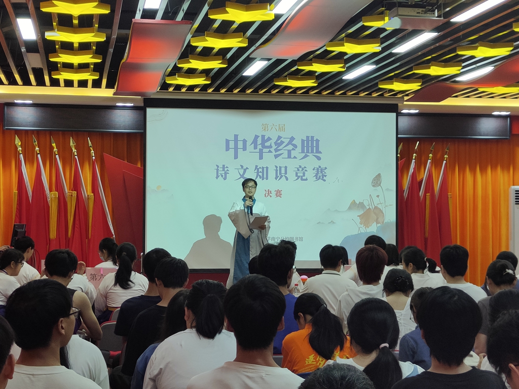 为深入贯彻落实习近平新时代中国特色社会主义思想,大力弘扬和传承中华优秀传统文化,教育引导学生坚定文化自信,延续文化根脉,厚植家国情怀,5月26日晚,由图书馆主办的第六届中华经典诗文知识竞赛决赛在党员活动中心成功举办。分校图书馆副馆长唐小芳老师、分校图书馆阮善华老师、陈金淦老师以及学生代表等约100人参加决赛。