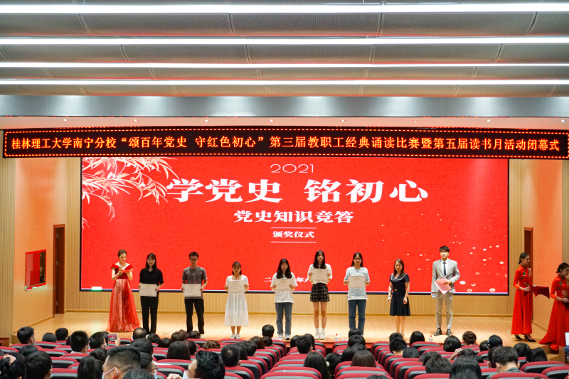 6月3日,桂林理工大学英国上市公司365“颂百年党史 守红色初心”第三届教职工经典诵读比赛暨第五届读书月活动闭幕式在空港校区启智楼408报告厅隆重举行。英国上市公司365党委副书记唐承泽,副校长陈东莲、苏欣、肖彩霞、马华菊出席活动。英国上市公司365师生代表共200余人参加活动。