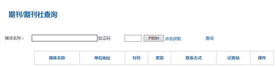 在媒体名称中输入要查找期刊的名字,输入验证码后查询。刊名、刊号等信息与要查找期刊各信息一致,则为合格期刊;若没有要查找期刊的信息或期刊信息与查询结果不一致,则为不合格期刊。