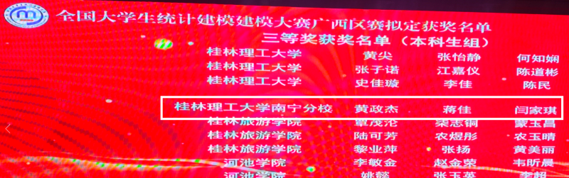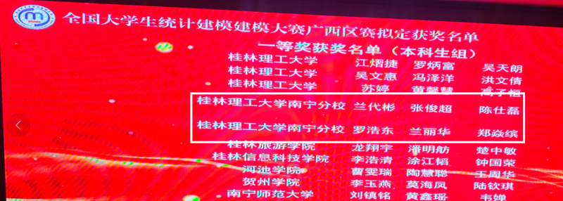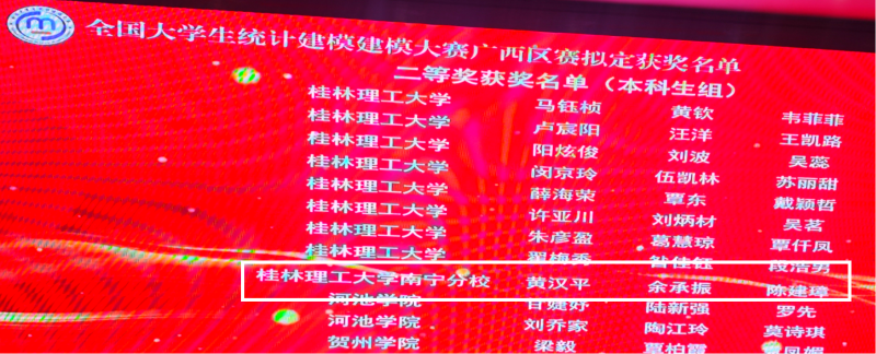 据悉,本届广西赛区共收到来自全区24余所本科院校提交的1097件参赛作品,参赛项目数量和决赛项目数量均创历史新高,经过资格审核、校级评委初评、区级评委复评等环节,通过层层筛选,最终由兰代彬、张军超、陈仕磊和罗浩东、兰丽华、郑焱缤组成的两个队伍荣获广西赛区一等奖,由黄汉平、余承振、陈建璋组成的队伍荣获广西赛区二等奖,由黄政杰、蒋佳、闫家琪组成的队伍荣获广西赛区三等奖。