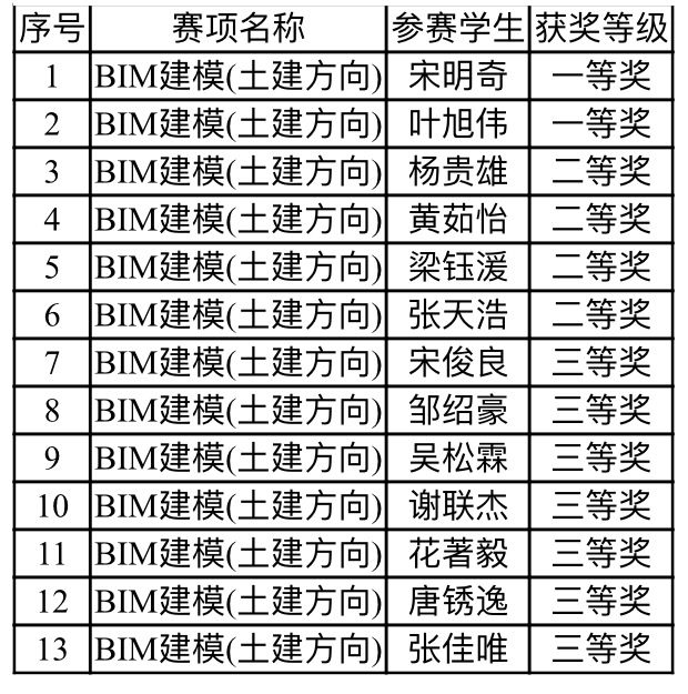 由我校土木与测绘工程系牵头组织参与此次比赛,BIM协会全程协助为我校学子搭建一次学习交流的机会,代表我校参加比赛的优秀学子们凭借着良好的心理素质、灵活的应变能力、扎实的专业基础,并且在有专业指导能力老师的共同带领下,使他们在众多队伍中脱颖而出并斩获佳绩获得两项全国一等奖、四项全国二等奖和七项全国三等奖。