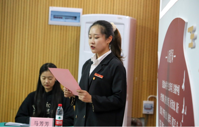 学员代表孙楠同学发言,她倡导青年学子要有实现中华民族伟大复兴的使命意识和承担社会责任,要树立良好的作风、增强自己的能力来更好的完成青春使命。