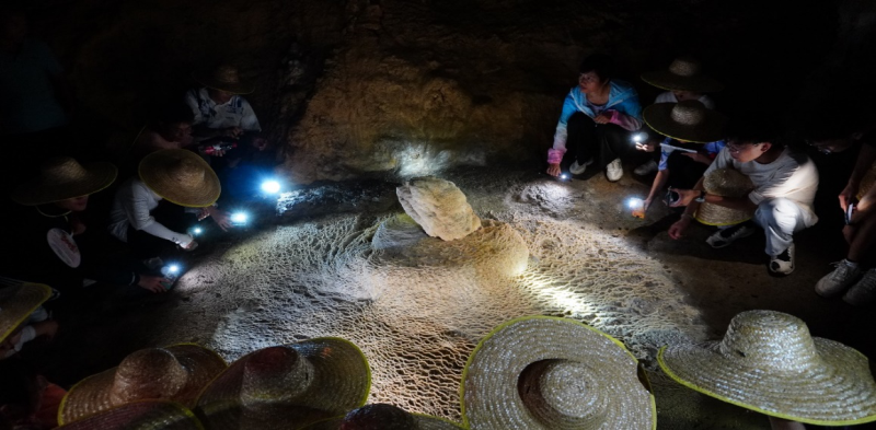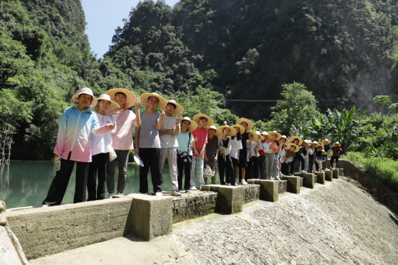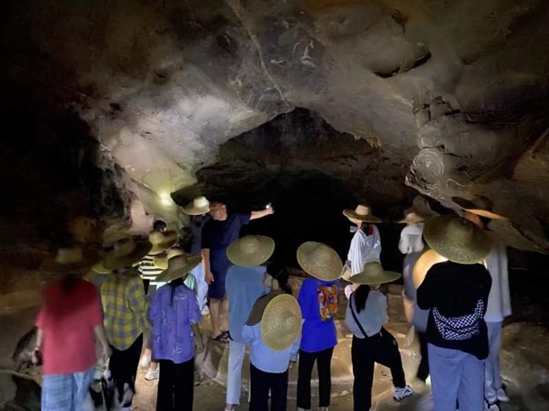 由广西商务厅派驻大新县硕龙镇念典村党组第一书记伍章余、大新县人大干部方汉章及蒙金华等村屯干带领去往本村未开发的岩洞进行考察,大家讨论初步如何立足实际进行开发。