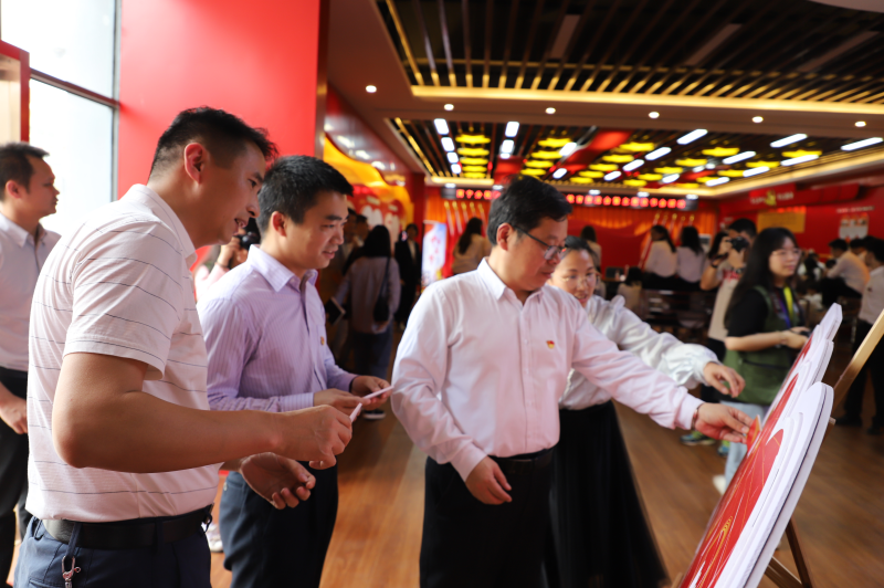 全体人员还在拼图块上写下自己学习感悟,依次粘贴到拼图墙上,共同拼出中国共产党成立100周年庆祝活动标识,并参加了《没有共产党就没有新中国》《我们走在大路上》快闪活动。