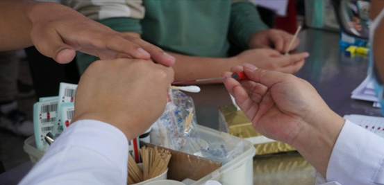 医护人员耐心为师生抽血检验