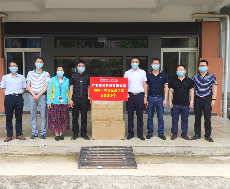 广西暮光科技有限公司19年入驻分校大创基地孵化项目,董事长黄泰琳是分校机械系自动化17-1班在校学生,他表示疫情期间,口罩是必需品,虽然买得到,但需求量还是很大,因此我们捐赠口罩给学校,做些力所能及的事情。黄泰琳说“广西暮光科技有限公司作为分校扶持和帮助下成长起来的企业,我们有责任和义务,为打赢疫情防控战贡献力量”。