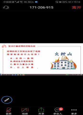 在本次主题团日活动中,各团支部通过重点学习习近平总书记关于疫情防控的重要讲话、观看防疫视频、了解防疫小知识、PPT展示等形式积极宣扬宪法精神、防疫在线宣誓、防疫知识小竞赛、分享防疫感动中国人物故事等内容,围绕线上团日主题表达了自己对疫情的关注与关心,进一步宣传防控抗疫精神,为决战疫情凝聚必胜信心、贡献青春力量。做到不访亲串友,不传谣造谣,在家学习,踏踏实实地做个“宅”青年。