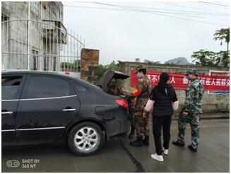 使命在肩,责无旁贷!珊罗籍退伍复学大学生、分校电信18-1班覃英杰同学与叶梓、叶洪成、满镇瑜、黄鹏宇四名退伍复学大学生,在战“疫”一线熠熠闪光,一纸“请战书”将自己送到抗疫防控一线。从2月6日开始,这五名退伍复学大学生每天8:00准时到监测点采取“全员上阵、全天值守”制度,积极配合站点值勤人员严格按照工作要求和查验流程,对途径的珊罗境内的车辆检查、人员进行消毒作业,对外地车辆劝返。对所有车辆驾乘人员进行体温检测,并认真做好登记工作,确保疫情站防控零死角、零盲区、零疏漏。