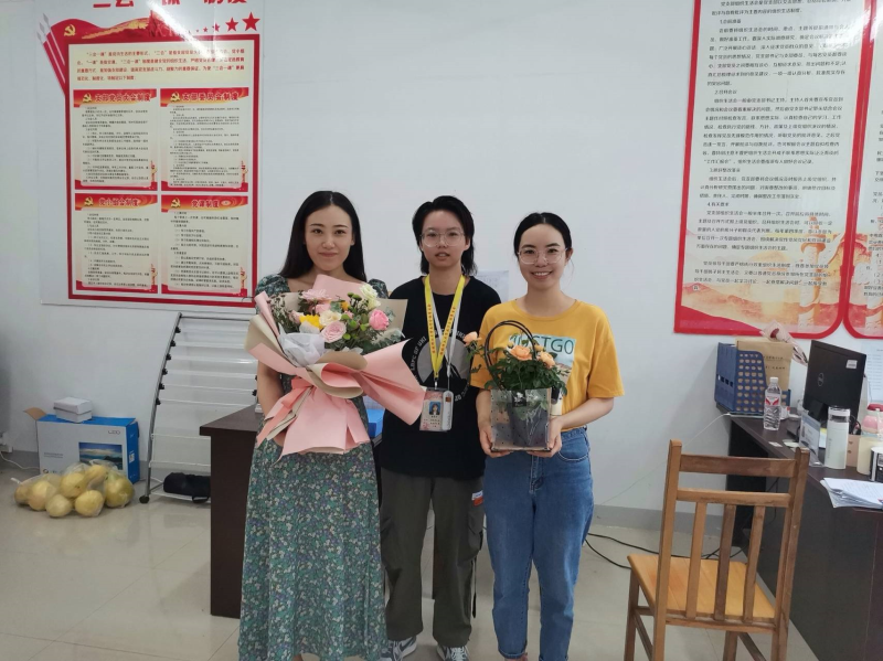 受到慰问的教职工代表对校领导的问候与祝福表示感谢,并表示在以后的工作中,将不忘初心、牢记使命,弘扬劳模精神,争做有理想信念,有道德情操,有扎实学识,有仁爱之心的四有教师,在桂工这片沃土上,开满繁花,结出硕果,帮助学生筑梦、追梦、圆梦!