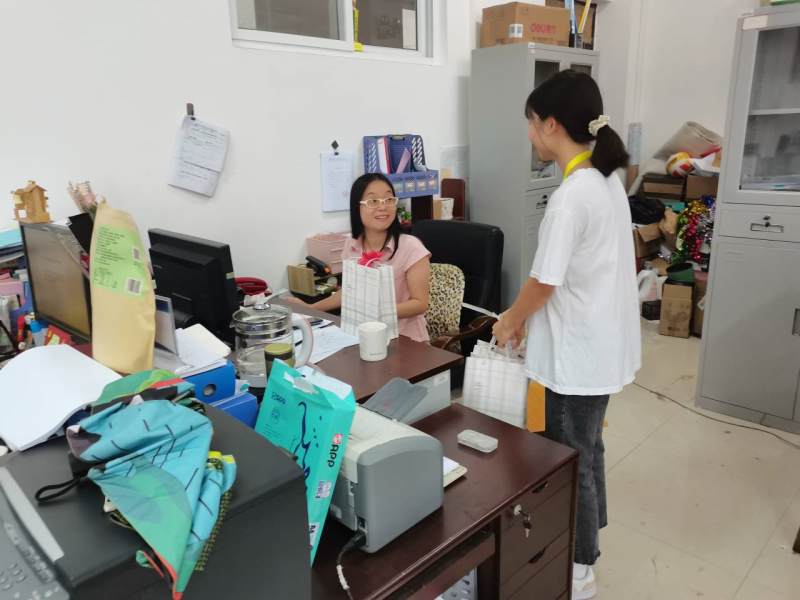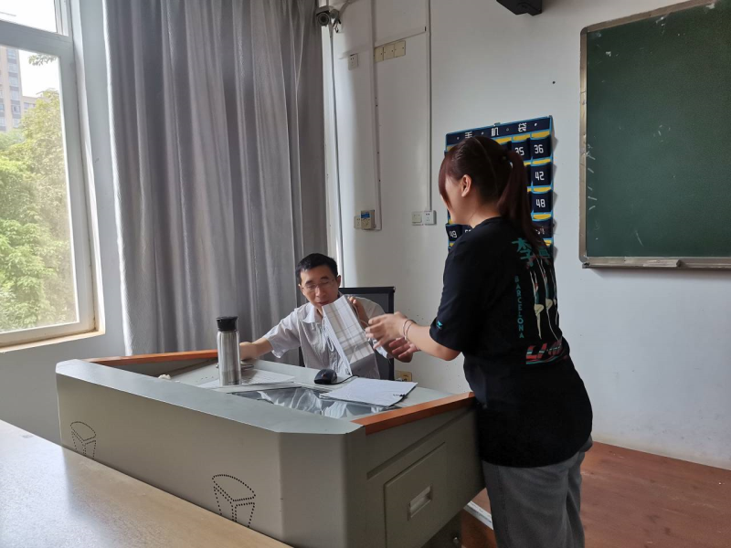 学生向老师送慰问品
