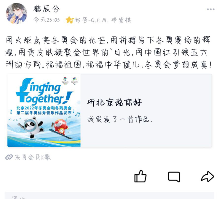 本次活动主要是让更多同学用自己的歌声表达对北京冬奥会的祝愿以及关注冬奥会的赛事,为我国健儿加油鼓劲。唱歌活动开展期间,同学们踊跃参与,一共收到111名同学的歌声和他们对冬奥会的祝愿。其中我们挑选出8名同学的作品与祝愿展示给大家看。并且还分享了10首积极向上的歌曲供大家参考,希望大家可以用自己的歌声来为我们北京冬奥会送上自己的祝愿。在此我们衷心祝愿2022年北京冬奥会顺利举办!