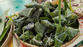 在工作人员的安排下,各项活动顺利进行,活动现场更是喜气洋洋、其乐融融。其中最为热闹的便是包粽子环节,同学们在了解有关粽子的包法后,便可以自己动手包粽子,期间有不懂的问题可以向工作人员询问相关细节。