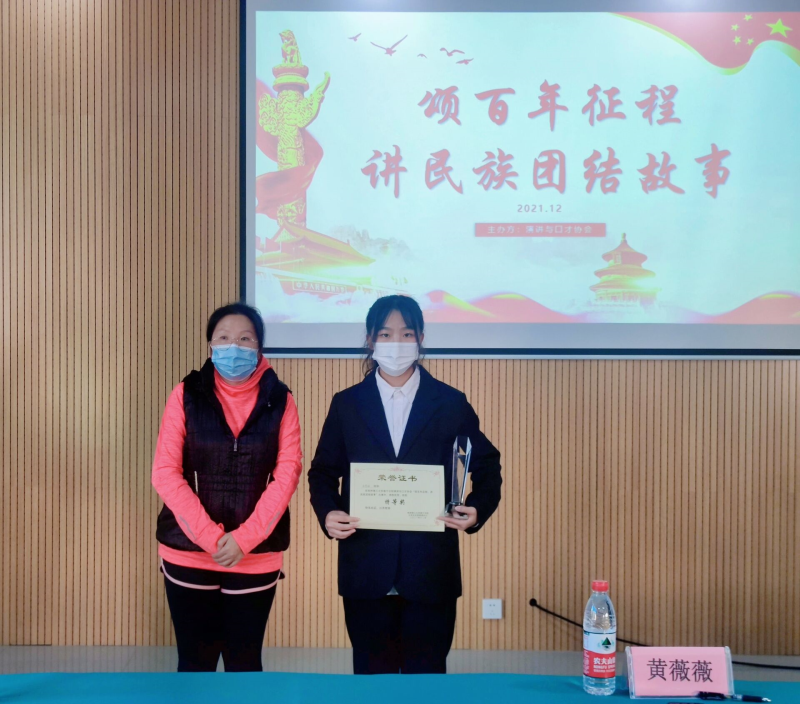 团委书记黄薇薇老师为一等奖选手颁奖