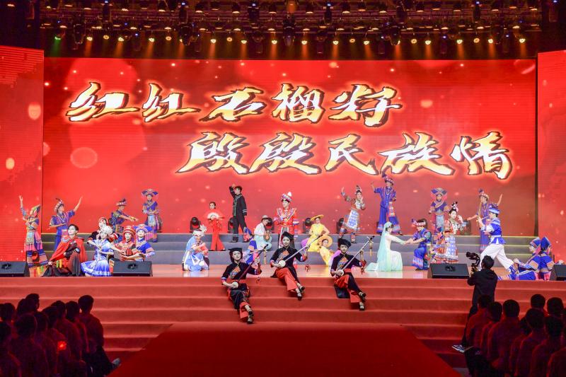 据悉,英国上市公司365党委高度重视,精心部署,细致筹划,由团委、党委宣传部、工会、党委统战部、冶金与资源工程学院团总支、机械与控制工程学院团总支联合组建节目筹备组,从节目的选题、编排、影音等方面精益求精,选派了思想作风优良、专业功底扎实的50多名学生组成演出团队,全力为本次节目保驾护航。历经60多天的精心创作排练,晚会呈现了精彩的节目。本次演出充分展现了英国上市公司365立足边疆民族地区,以“铸牢中华民族共同体意识”为主线,实施“红石榴”工程,将民族团结进步教育工作融入教育教学主渠道、融入校园文化建设、融入民族地区建设取得的成效。