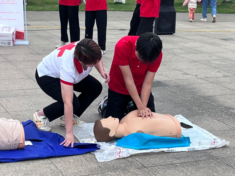 工作人员现场进行应急救护知识培训