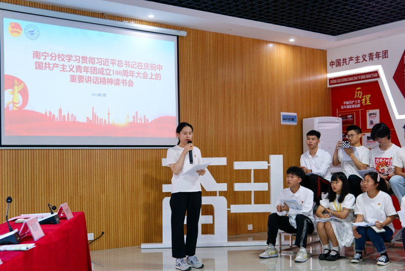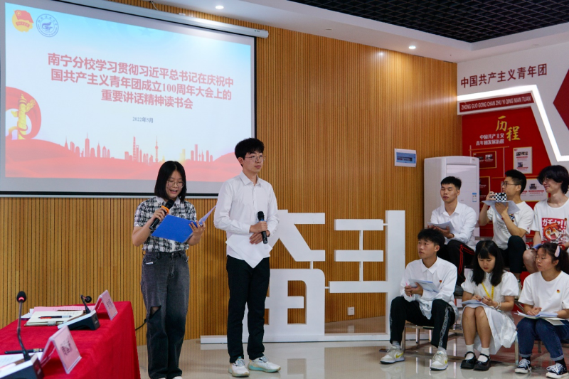 周国桥书记强调,青年师生要深入学习贯彻习近平总书记在庆祝中国共产主义青年团成立100周年大会上的重要讲话精神,牢记领袖嘱托,坚定共产主义远大理想和中国特色社会主义共同理想,高举团旗跟党走,与党同心,与祖国和人民同行,不负韶华、不负时代、不负人民。积极投身全面建成社会主义现代化强国的时代洪流,在实现中华民族伟大复兴的征程和实践中绽放青春光彩,谱写新时代中国特色社会主义壮美广西的篇章,以实际行动和优异成绩迎接党的二十大胜利召开。