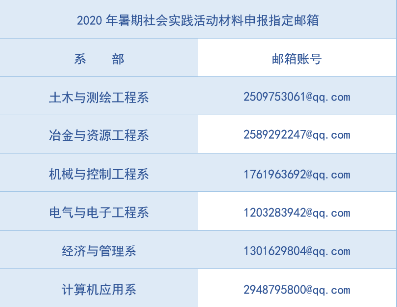 (二)广泛宣传动员,实行报备制度。2020年将继续实行严格的团队报备制度。各系所有社会实践团队须于7月23日中午12:00前完成校内报备,即填写《2020年大学生暑期“三下乡”社会实践和就业创业见习活动团队登记表》(附件3),并将电子版发送至各系指定邮箱进行报备。未登记报备的团队,不能开展社会实践活动及不能申报相关奖项遴选。